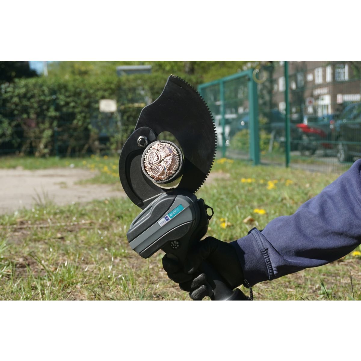 - High cutting capacity: Cuts copper and aluminum cables (class 1 and 2, single-stranded, multi-stranded, as well as single- and multi-stranded sector conductors) up to Ø 65 mm, e.g., NAYY 4x240 mm² or NYY 4x185 mm²