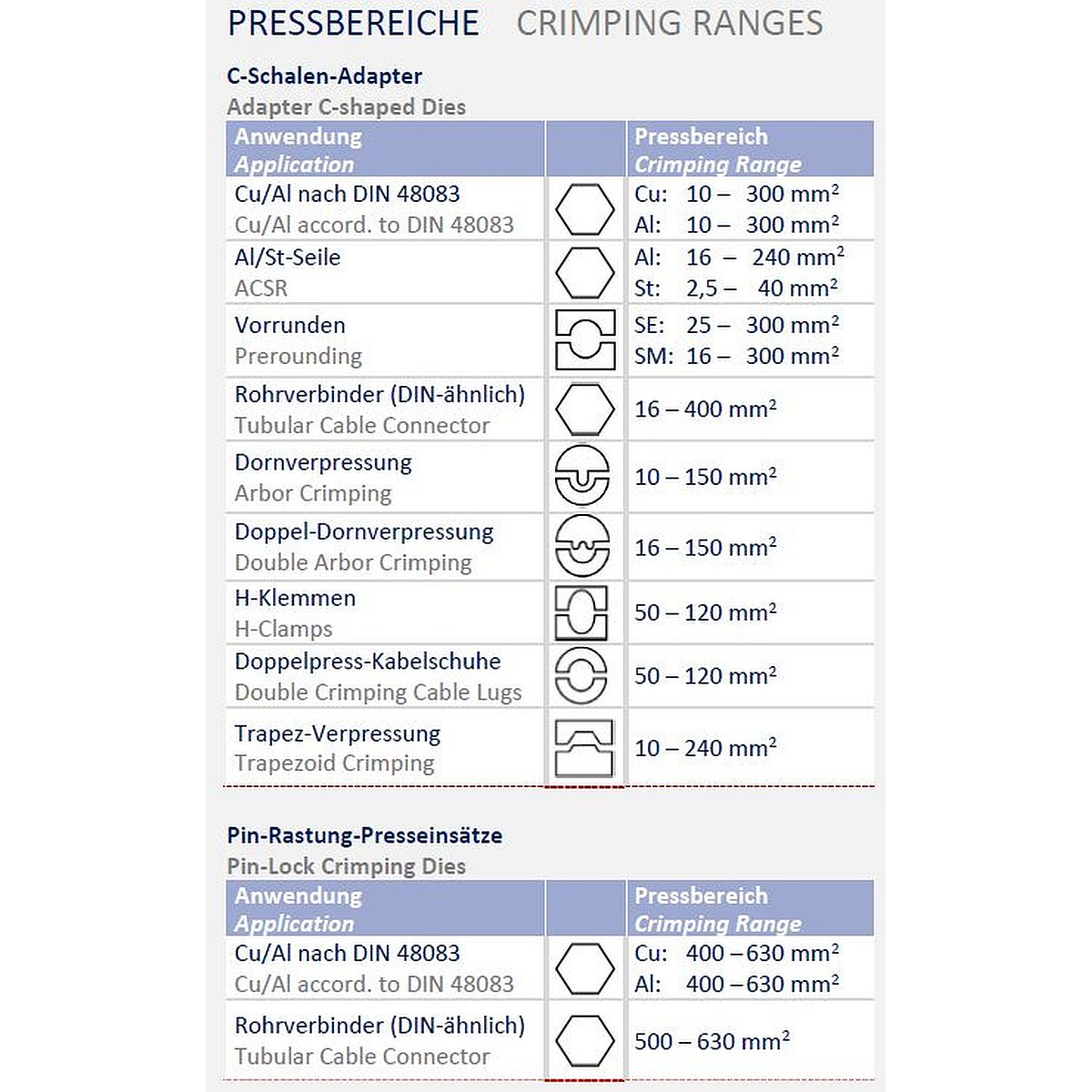| Pressbereich DIN Cu: | 10 - 630 mm² |
