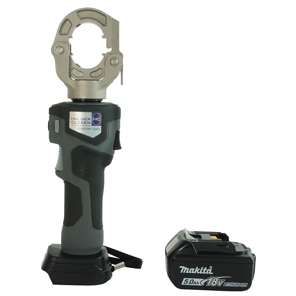 - Sicheres Arbeiten: Geschlossener, drehbarer Presskopf (180°) mit Schnappverschluss und die Nutzung gängiger schmaler C-Schalen-Presseinsätze sorgen für maximalen Anwenderschutz und vielseitige Einsatzmöglichkeiten.