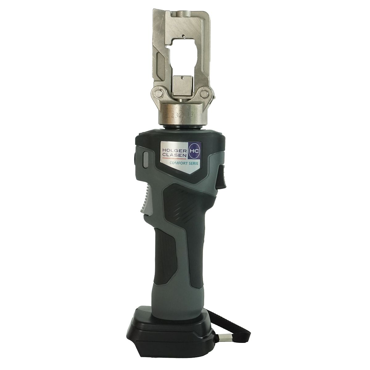 - Maximale Sicherheit: Geschlossener Presskopf mit Bügel und Klinke, sichere Aufnahme der Presseinsätze für kontrolliertes Arbeiten ohne Herausfallen.