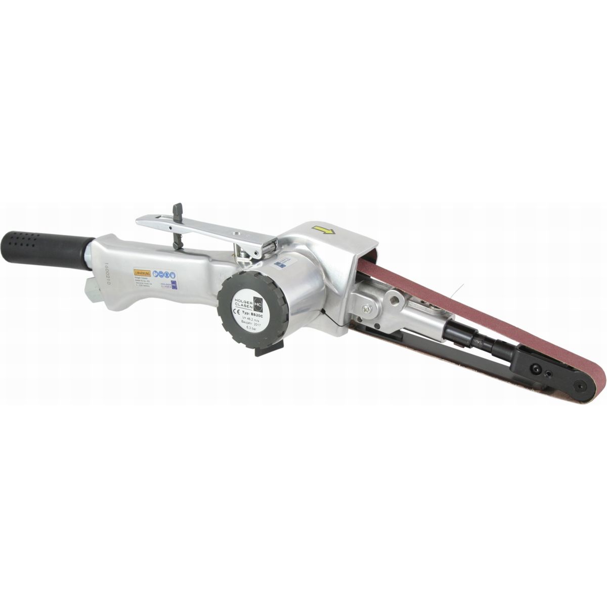 Der Druckluft-Fingerschleifer BS 20 C ist ein universell einsetzbarer Bandschleifer, er  ist leicht umbaubar für verschiedene Anwendungen, wie konvexe und konkave Formen, Flächenschliff, Verrunden von Kanten oder Entrostungsarbeiten. Der kräftige Fingerschleifer ist ein Profigerät und findet seinen Einsatz in vielen Bereichen, vom Vorschliff über Entrostung zu Feinschliff oder zum Veredeln von Oberflächen. Sie können mit ihm je nach Schleifbandbestückung unlegierte Stähle, NE-Metalle wie Aluminium, Messing oder Bronze, Gusseisen, Stahllegierungen aber auch Edelstahl (Vlies-Schleifband) bearbeiten.