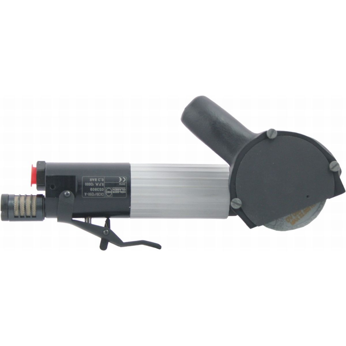 Der Druckluft-GFK-Schneider CK30/1200-A ist dank des kleinen Scheibendurchmessers gerade im Formenschnitt das optimale Werkzeug. Mit seinen 8 mm Schnitttiefe trennt er dünne Kunststoff- sowie GFK-Platten auch aufgrund der gut abgestimmten Schnittgeschwindigkeit und liefert zuverlässig saubere Schnitte, die kaum eine Nachbearbeitung erfordern. Dabei saugt das Werkzeug direkt am Entstehungsort die unerwünschten, häufig Gesundheit schädigenden Stäube effektiv in eine externe Staubabsauganlage. Die gute Auflagekante macht das sehr leichte und handliche Werkzeug zu einem präzise und gut zu führenden Werkzeug für den industriellen Einsatz.