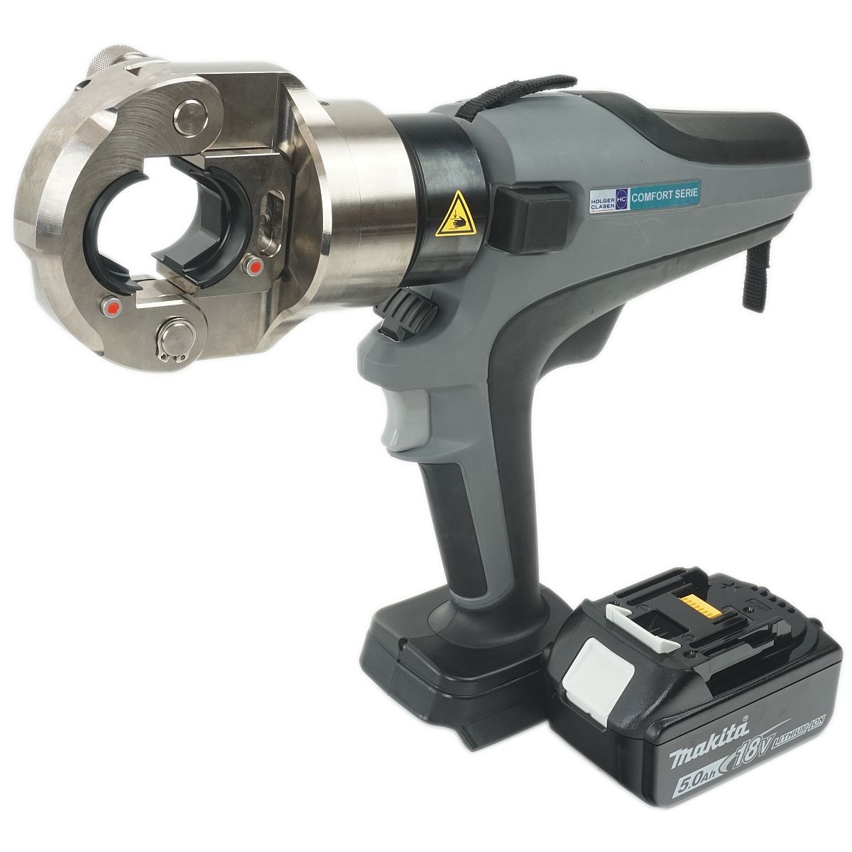 - Extremely powerful: 140 kN crimping force and 22 mm stroke for secure, permanent connections with cable cross-sections up to 400 mm² according to DIN standards.