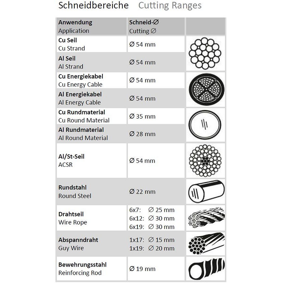 - Maximum cutting capacity: 54 mm opening width – suitable for cables and materials of various dimensions