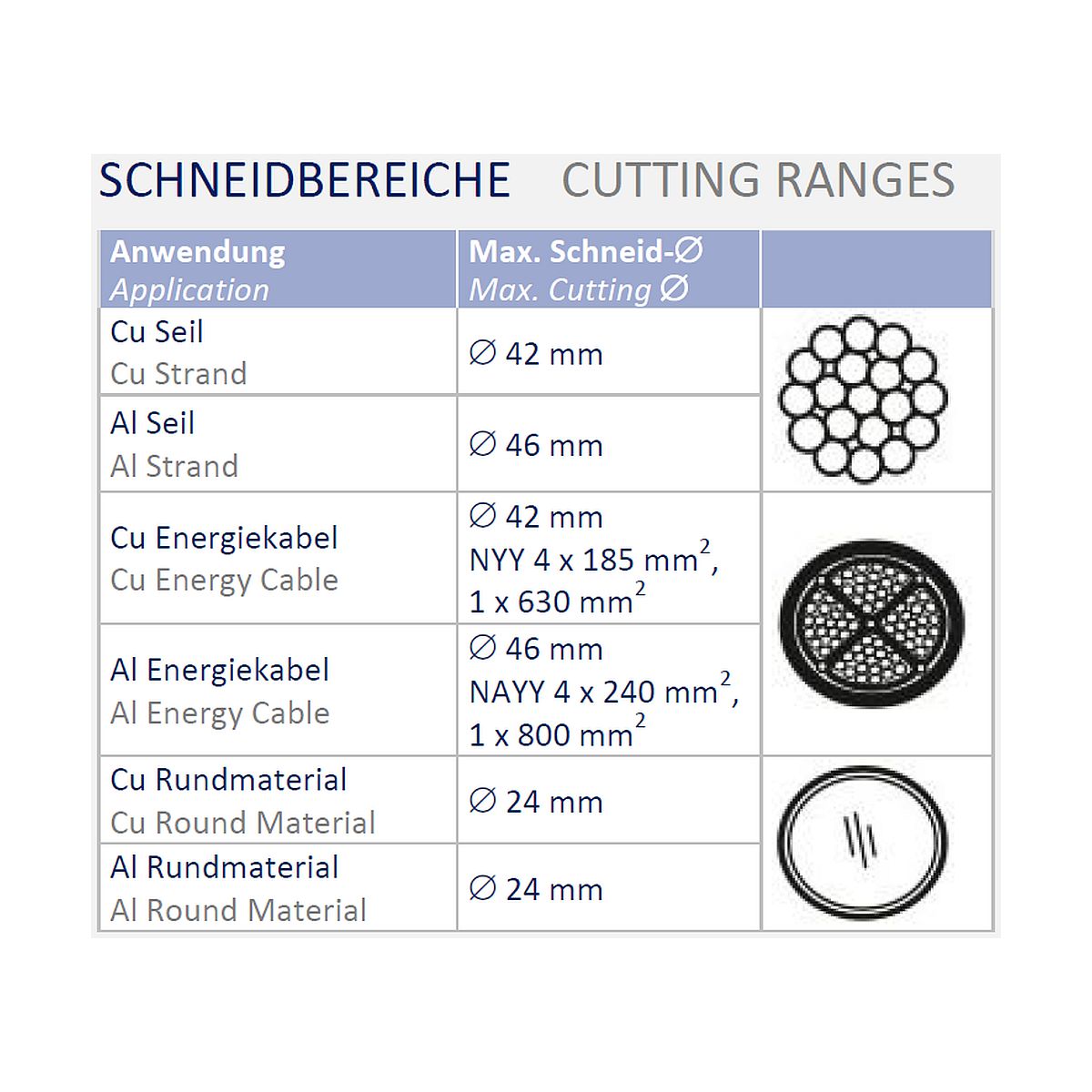 The cutting head is designed for cutting cable of up to 120 mm diameter and is ideally for providers, utility companies and their service providers, power plants and telecommunications.
