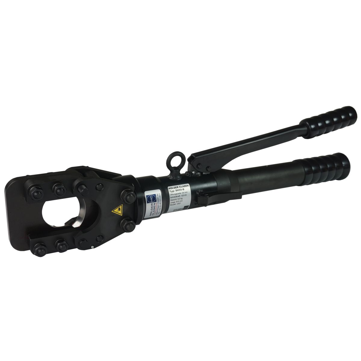 The Hand-Hydraulic Cable Cutter SH55-A cuts cables, power cables and telephone cables up to 54 mm as well as solid material, especially steel. It is used in the areas of power supply companies, public utilities and their service providers, power plants, transport companies, telecommunications as well as in the area of passenger and freight elevators.