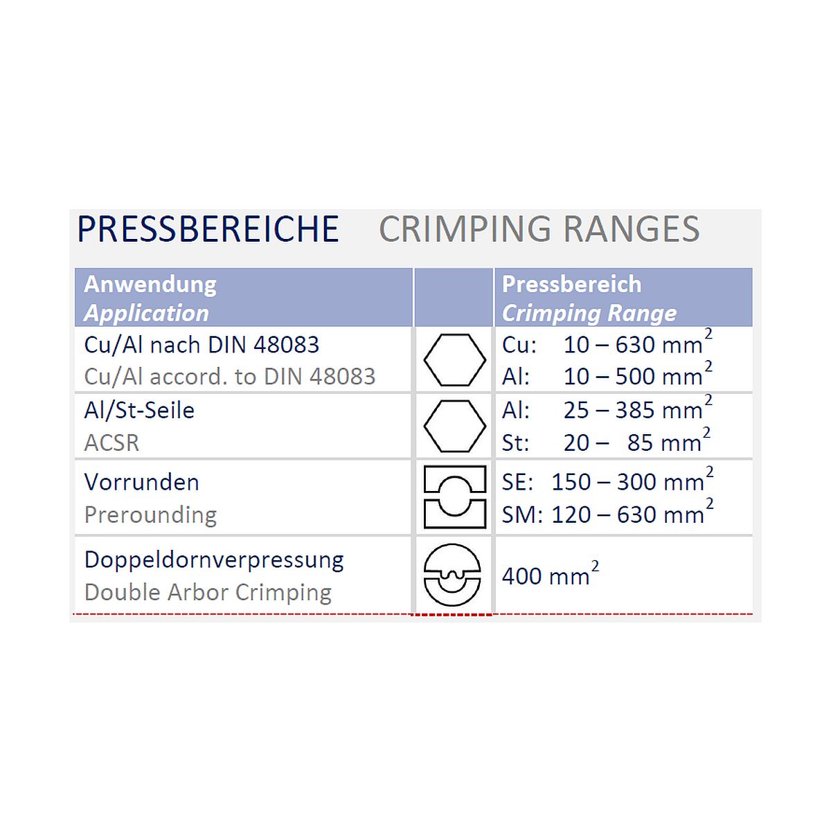 | Pressbereich DIN Cu: | 10 - 630 mm² |