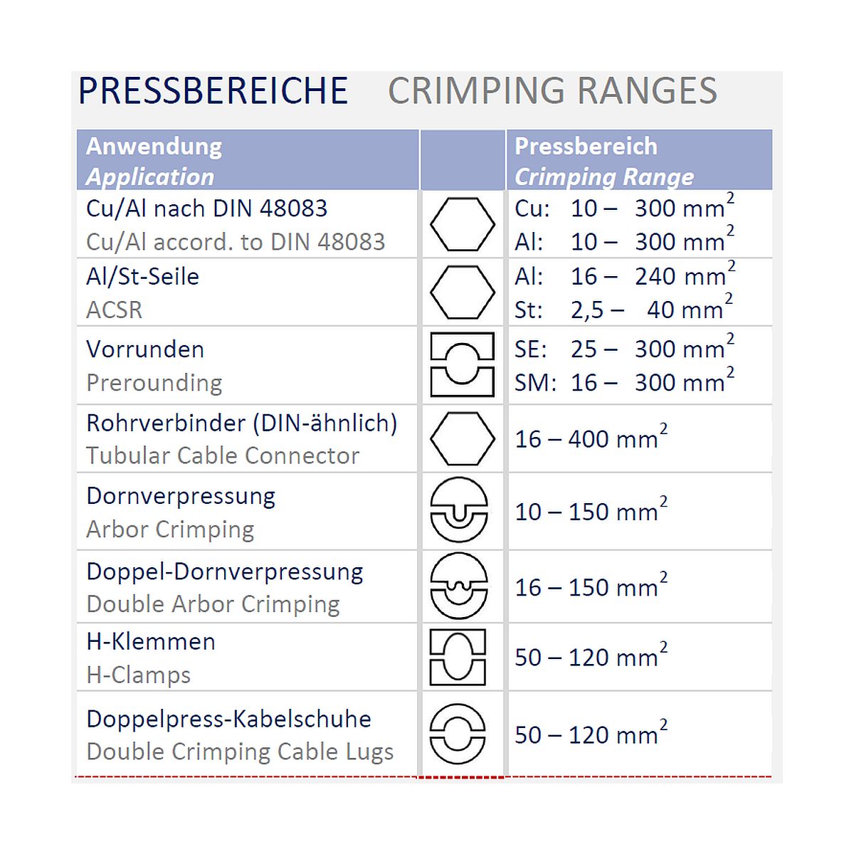 | Pressbereich DIN Al: | 10 - 300 mm² |