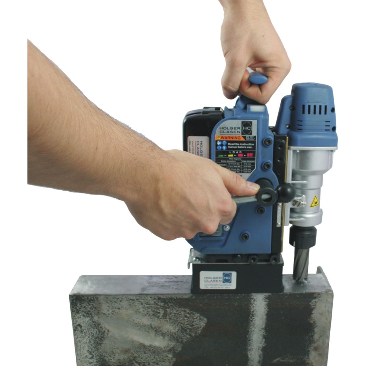 Die Akku-betriebene Magnet-Kernbohrmaschine AMB27/20-MV-BDS mit BDS-Aufnahme ist geeignet zum Bohren von metallischen Materialien mit Bohrkronen. Anwendungsmöglichkeiten liegen in den Bereichen Freileitungs-, Schiffs- und Stahlbau sowie bei industriellen Montagearbeiten, die den mobilen Einsatz einer Kernbohrmaschine ohne Netzversorgung erfordern.