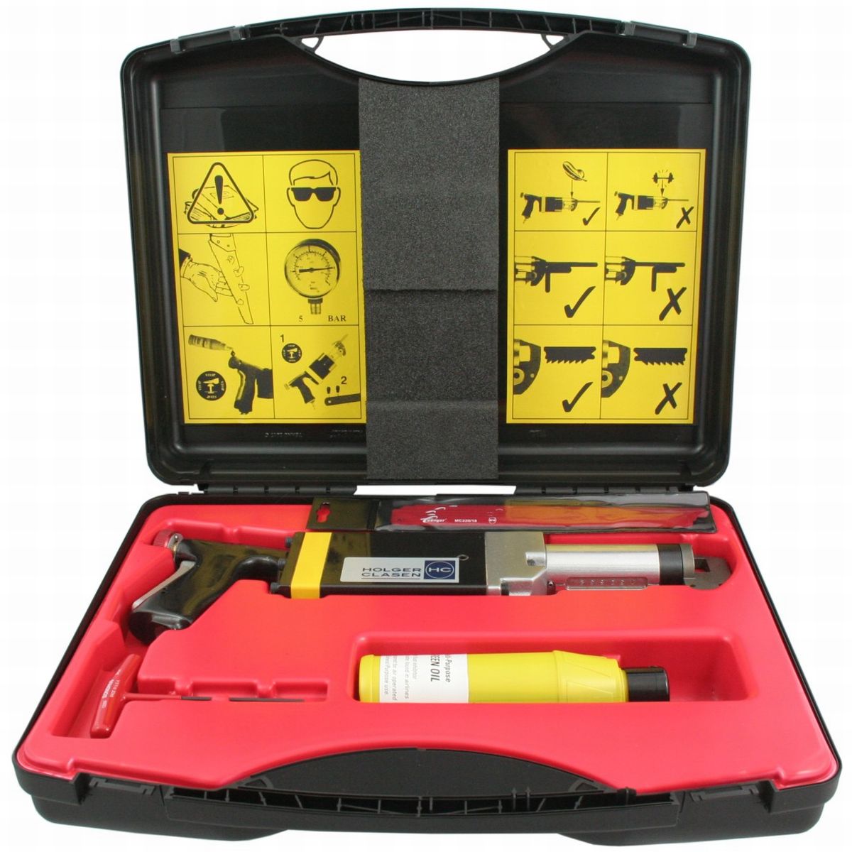 Werkzeug, Schnellkupplungsnippel, Montagewerkzeug, Sägeblätter, Druckluftöl, Transportkoffer.